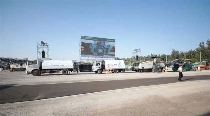 在現(xiàn)場(chǎng)演示環(huán)節(jié),在場(chǎng)的嘉賓及客戶(hù)都對(duì)新技術(shù)表現(xiàn)出了濃厚興趣,通過(guò)現(xiàn)場(chǎng)可以看到 W 380 CR 機(jī)隊(duì)一條再生的工藝,可以直觀(guān)感受就地冷再生流程。通過(guò)現(xiàn)場(chǎng)講解人員的講解,可以清晰地了解這項(xiàng)工藝的特點(diǎn),為什么可以具有如此多經(jīng)濟(jì)和環(huán)保效益的原因。